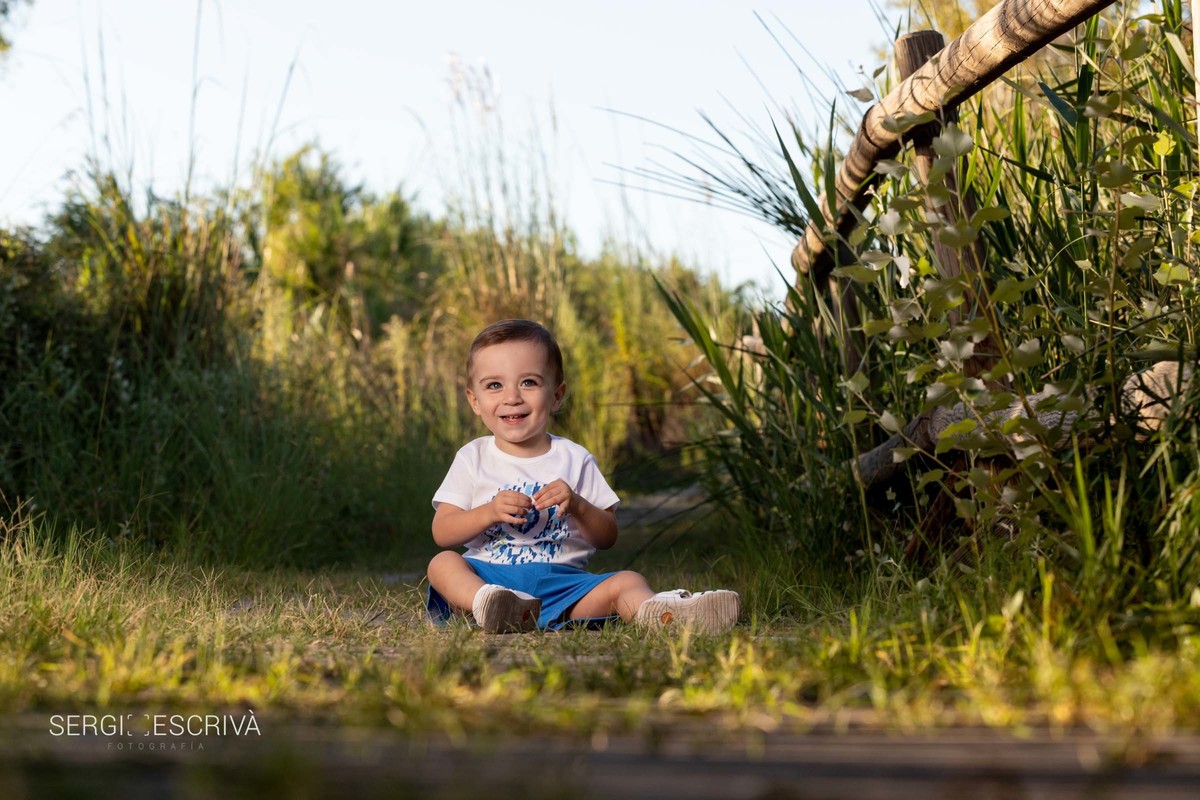 Me comentaron que durante esta primavera solían pasear por este paraje maravilloso que tenemos en la marjal gandiense, conocido como la marjal dels Borrons, y que sería un lugar ideal para hacer a Borja una sesión de exteriores. Cuando los niños tienen esta edad, al fotografiarlos, tienes que dejarlos libres, dejar que correten de un lado para otro y que se diviertan. Es la única forma de sacar esa expresividad genial que tienen en estos momentos. Adoro buscar, además de la sonrisa, su cara de curiosidad, el rostro que pone cuando juega con los padres, esa es la esencia de cada niño y por lo que cada sesión es única y la razón por la que me encanta tanto fotografiar estos momentos.