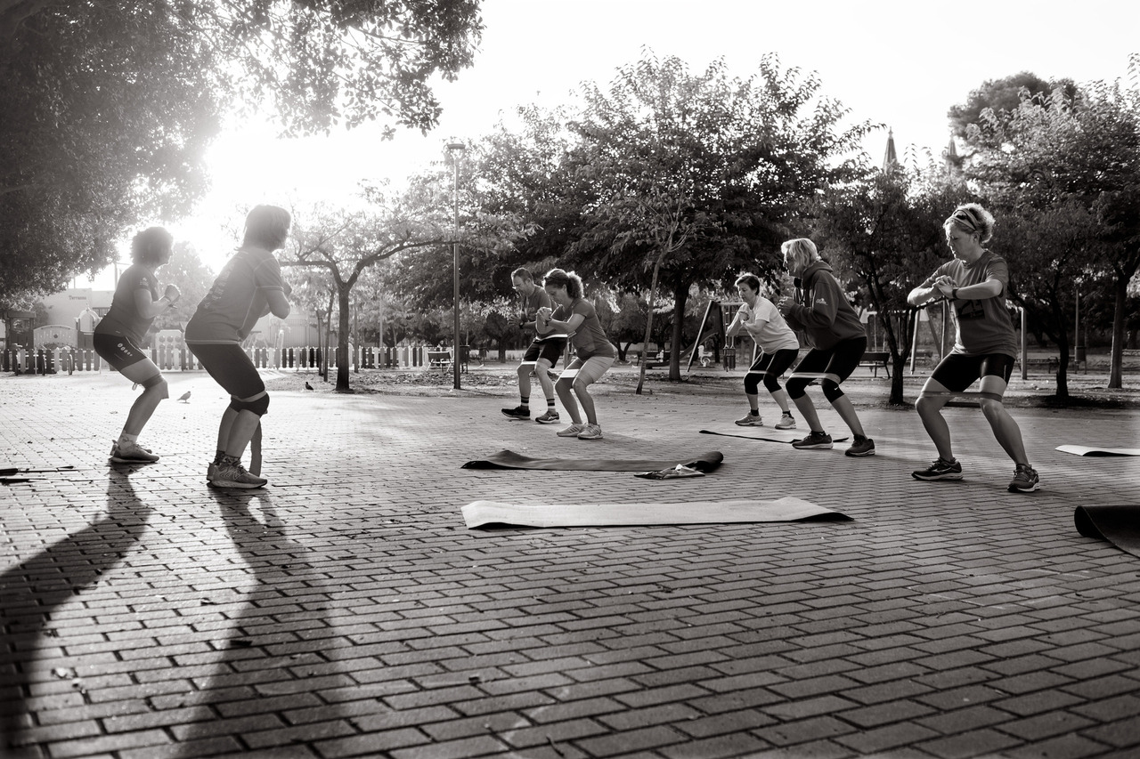 Otro día, llevando a Bruno al colegio me encontré con un grupo de personas entrenando en el parque, con la salida del sol a su espalda. Un lugar ideal para entrenar.