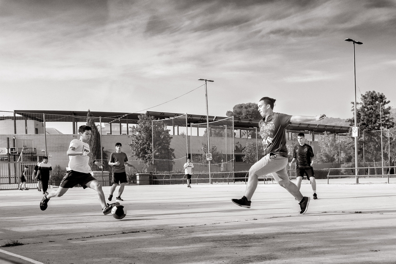 Eso me hizo ver que el deporte es una de las características de nuestro barrio, la luz, el espacio. Así que encontré a un grupo de chicos entrenando a futbol. A nivel personal, para hacer partidillos entre amigos.