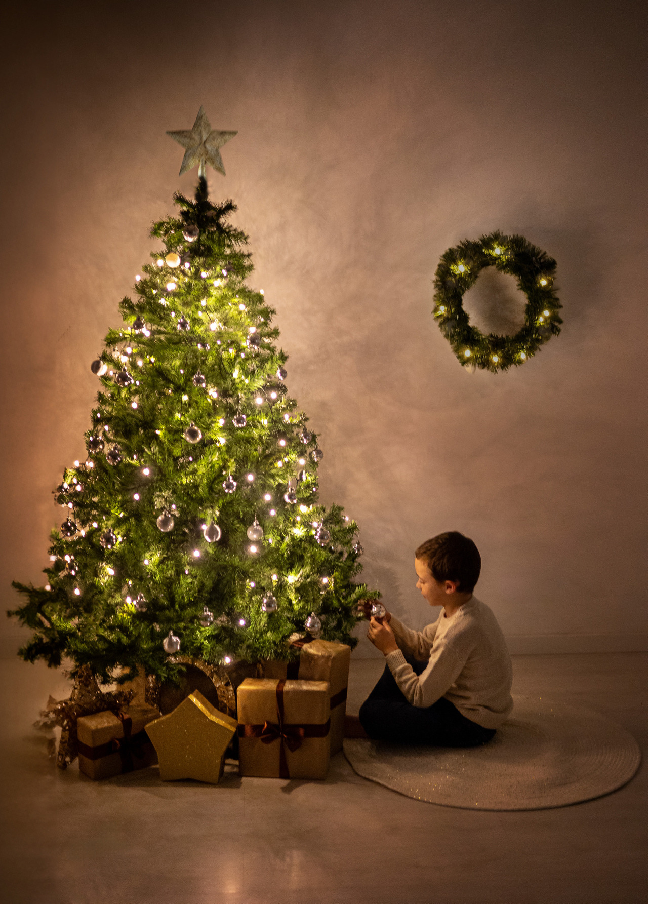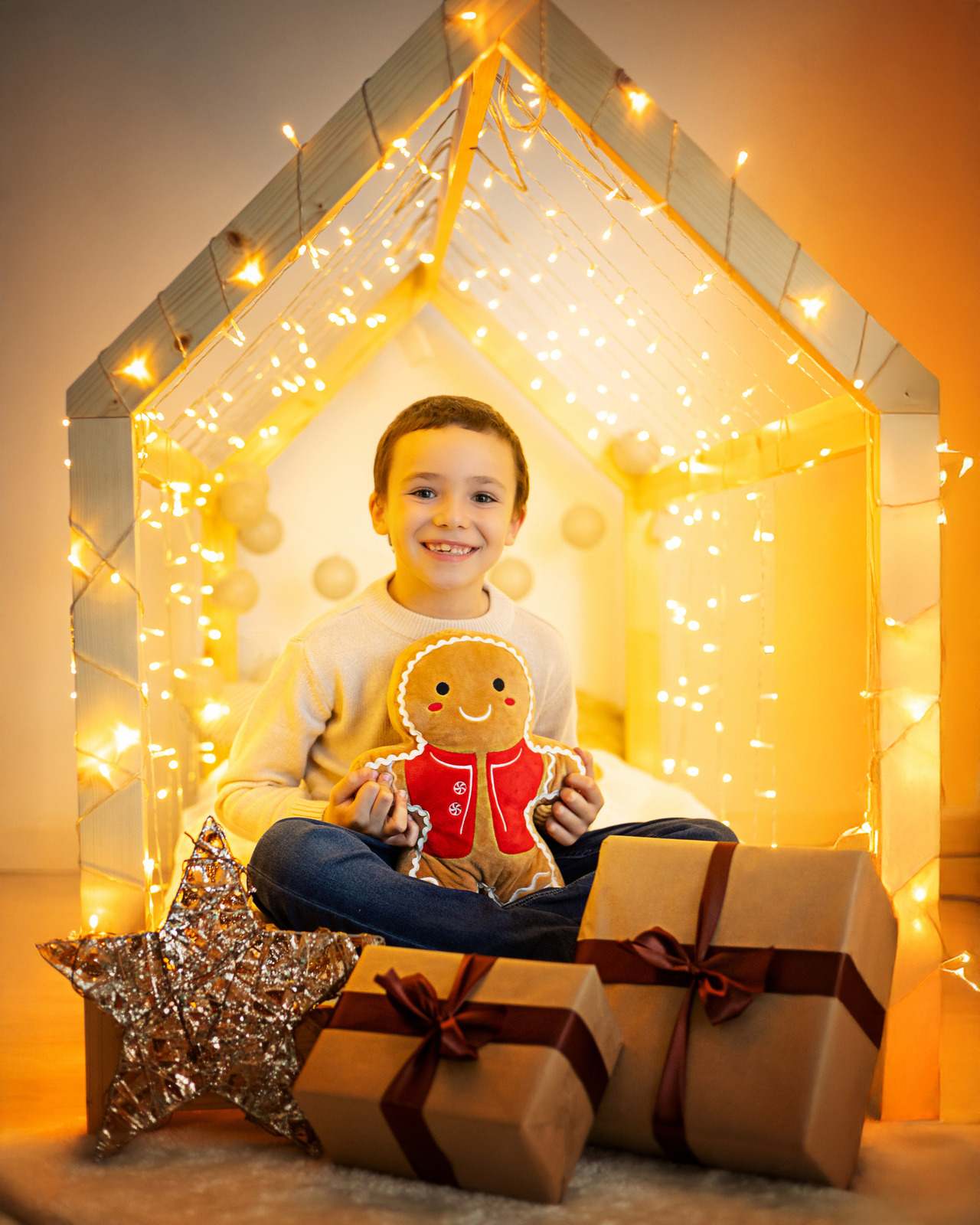 En nuestro estudio queremos que las auténticas estrellas sean las personas que vengan a hacerse las fotos con nosotros. Por eso el escenario, muchas veces es solo un ambiente, un lugar que evoque a Navidad e ilusión, pero no un fondo enorme donde situar a los niños y que todas las fotos salgan iguales.